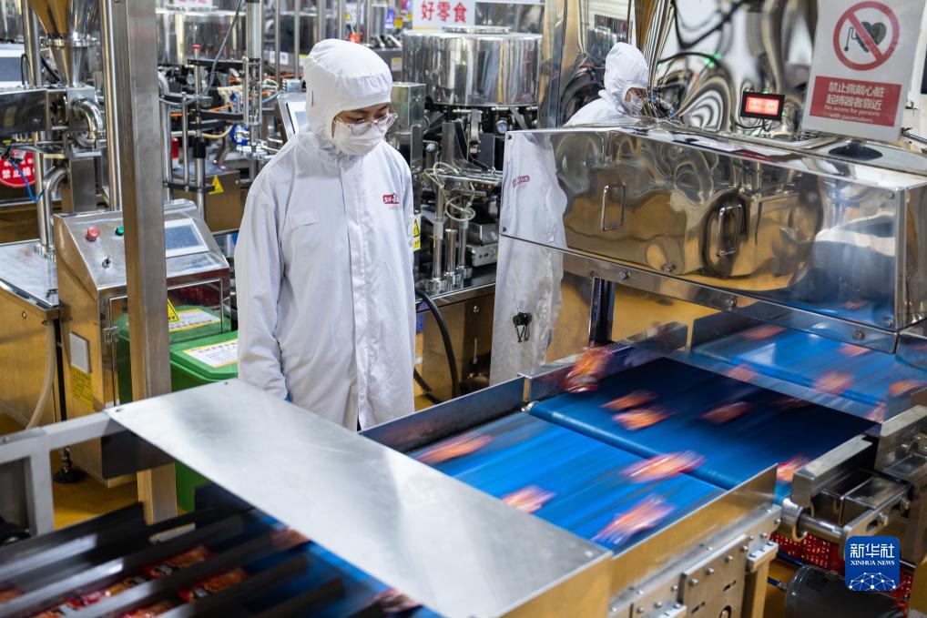 11月23日,在鹽津鋪子瀏陽生產基地,成品正在通過X光機進行異物檢測。