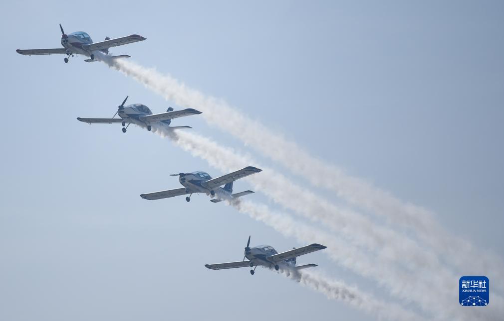 11月23日,山河飛行表演隊在2023亞洲通用航空展開幕式上進行飛行表演。