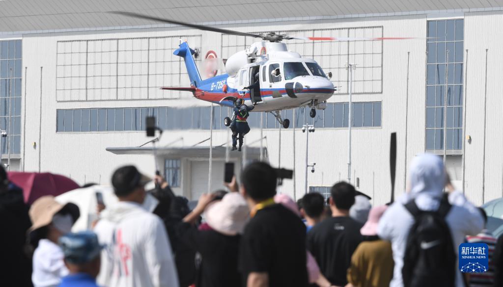 11月23日,交通運輸部南海第一救助飛行隊在2023亞洲通用航空展開幕式上進行空中救援演示。