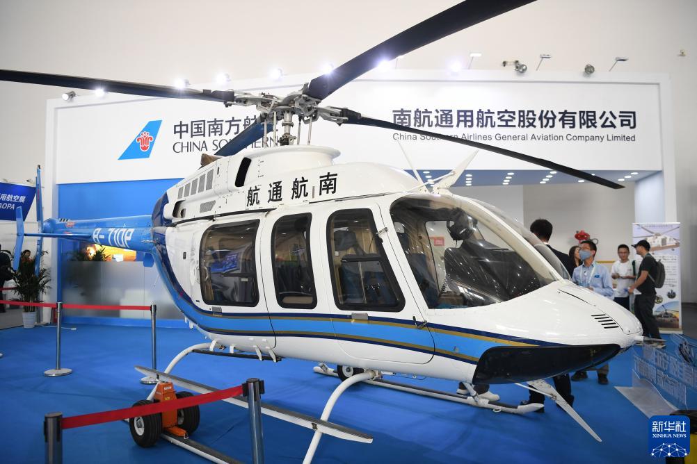 這是11月23日拍攝的航展上的南航通用航空的貝爾407型直升機。