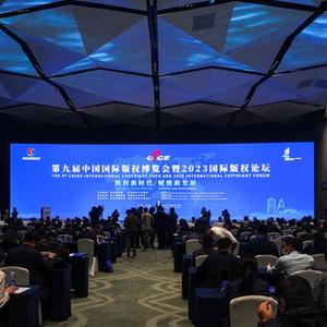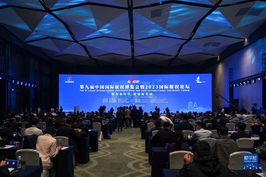 11月23日在成都天府國際會議中心拍攝的第九屆中國國際版權博覽會暨2023國際版權論壇現場。