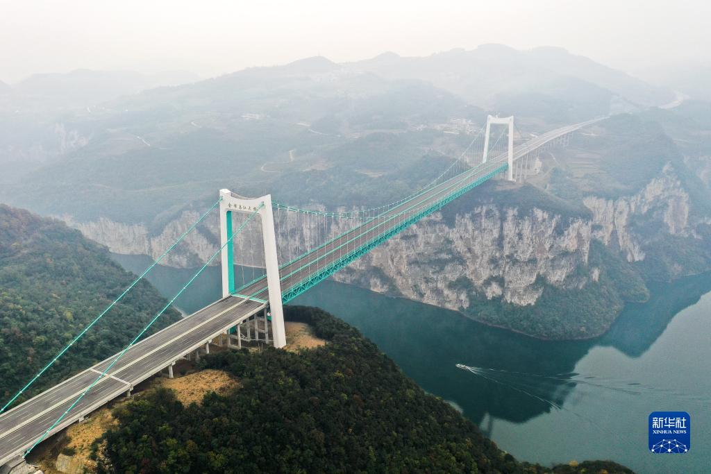 這是11月23日拍攝的貴金高速公路金烽烏江大橋(無人機照片)。