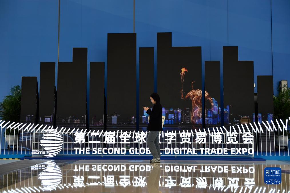 11月23日,參觀者在第二屆全球數字貿易博覽會參觀。