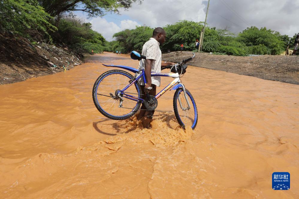 11月22日,在肯尼亞加里薩,行人涉水前進。