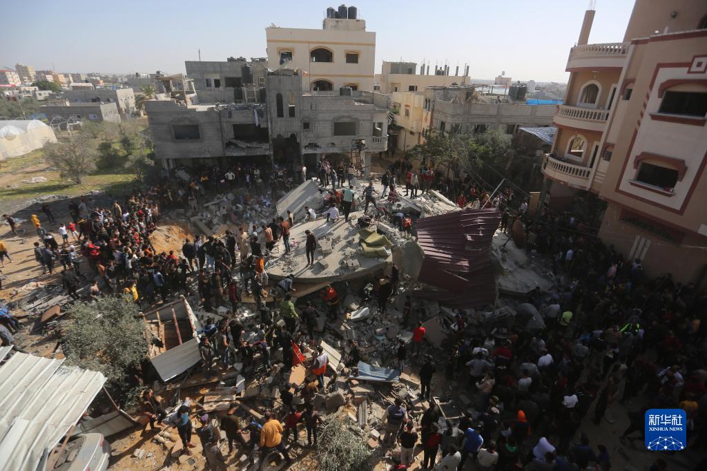 11月23日,人們聚集在加沙地帶南部城市拉法一處廢墟上。