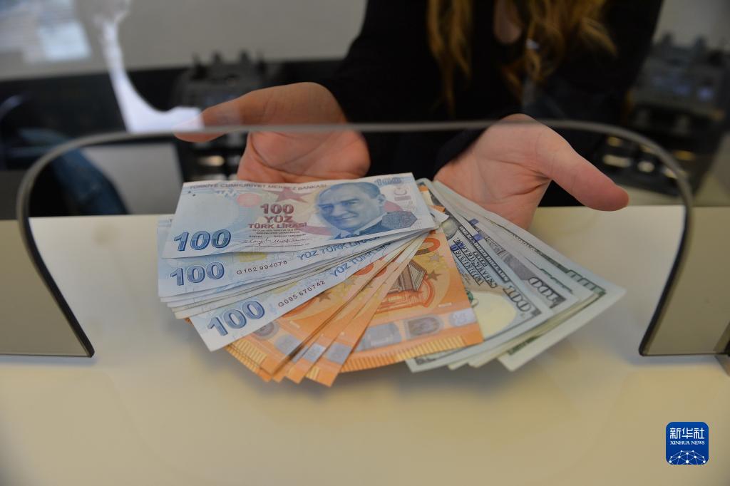 這是11月23日在土耳其安卡拉一家貨幣兌換處拍攝的紙鈔。