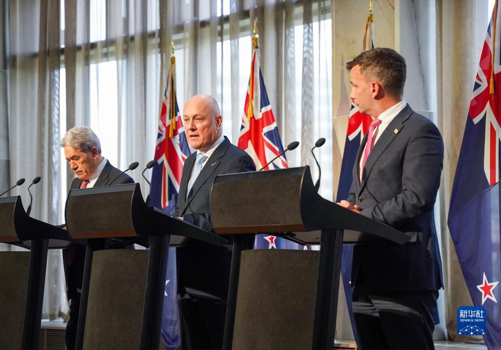 新西蘭候任總理、國家黨領導人克里斯托弗·拉克森24日與新西蘭行動黨領導人戴維·西摩、優先黨領導人溫斯頓·彼得斯在惠靈頓國會大廈簽署正式協議,宣布組建由國家黨領銜的新一屆政府。