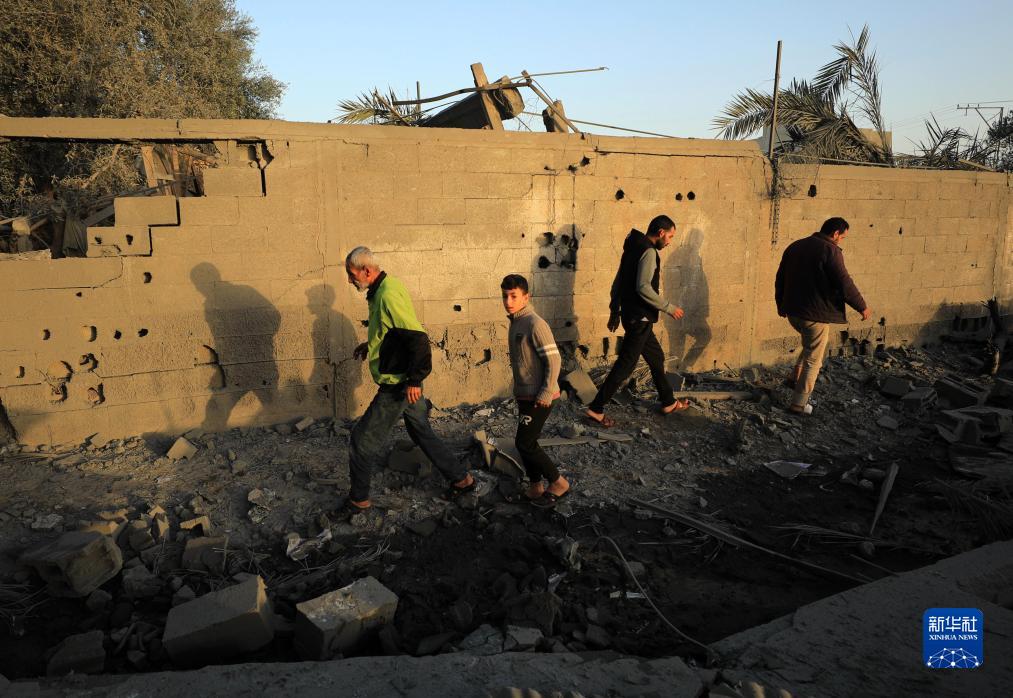 11月23日,在加沙地帶南部的汗尤尼斯,人們從以軍襲擊后破損的街頭走過。