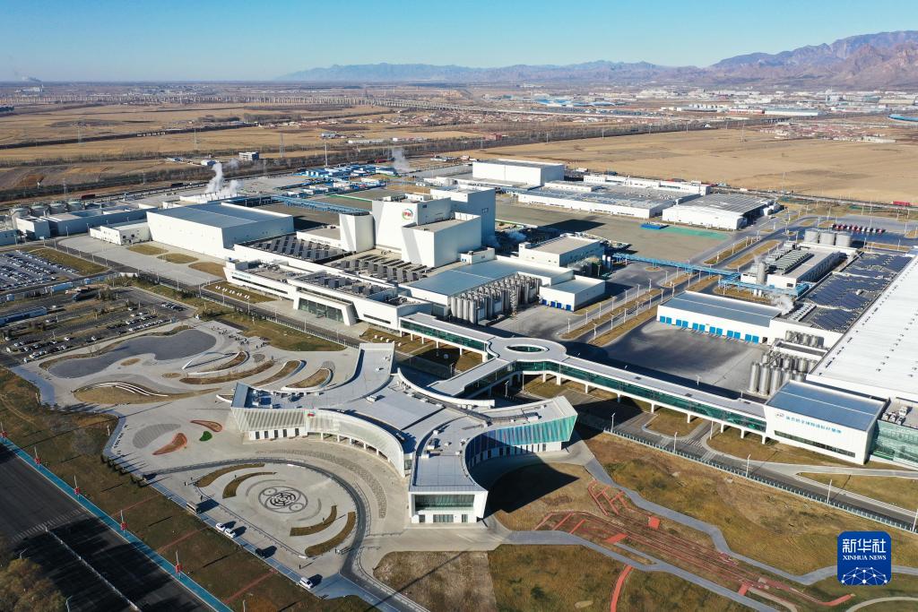 這是11月23日拍攝的呼和浩特市伊利現代智慧健康谷一景,伊利液態奶全球智造標桿基地等工廠坐落于此(無人機照片)。