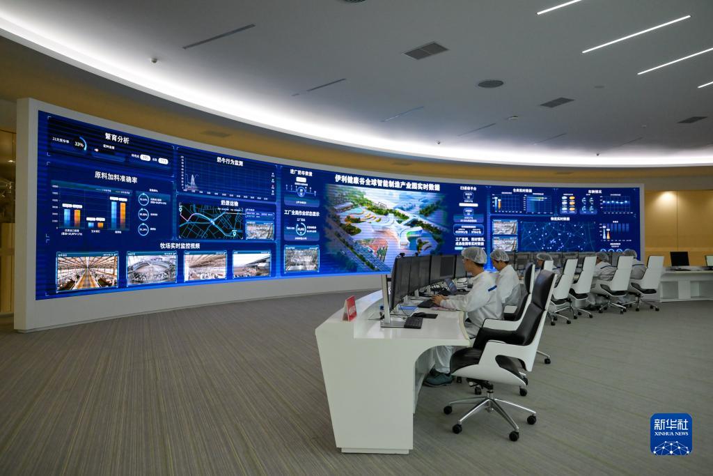 11月23日,在呼和浩特市伊利現代智慧健康谷液態奶全球智造標桿基地,工人在監測設備運行。