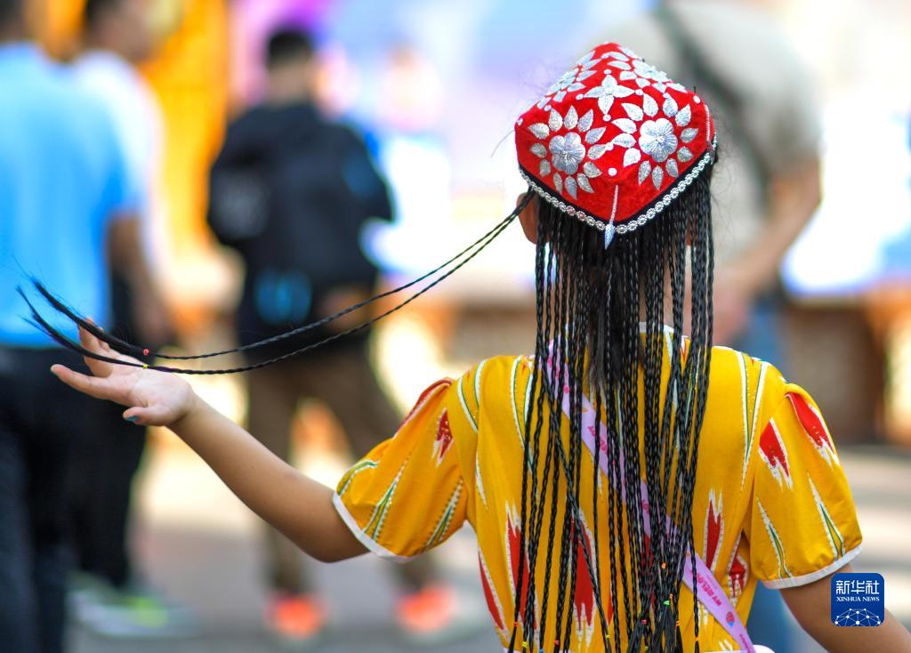烏魯木齊市新疆國際大巴扎,一名小游客在游覽觀光(8月16日攝)。