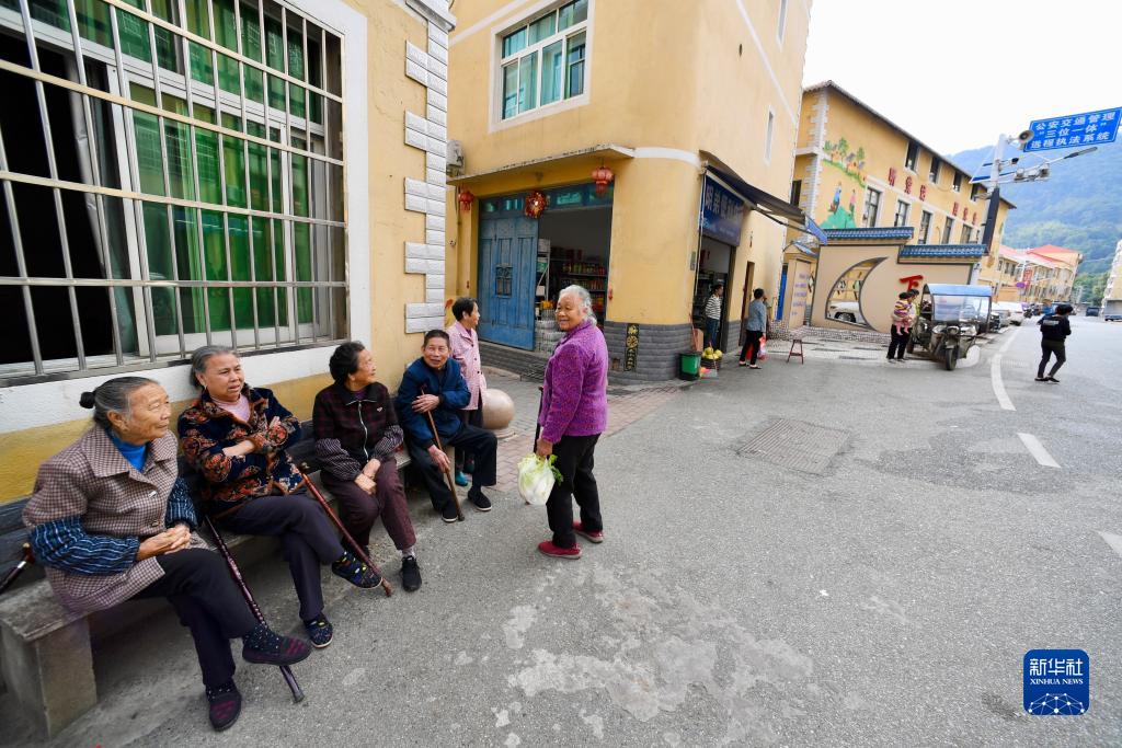 11月15日,幾名下岐村的老人在村口閑坐。