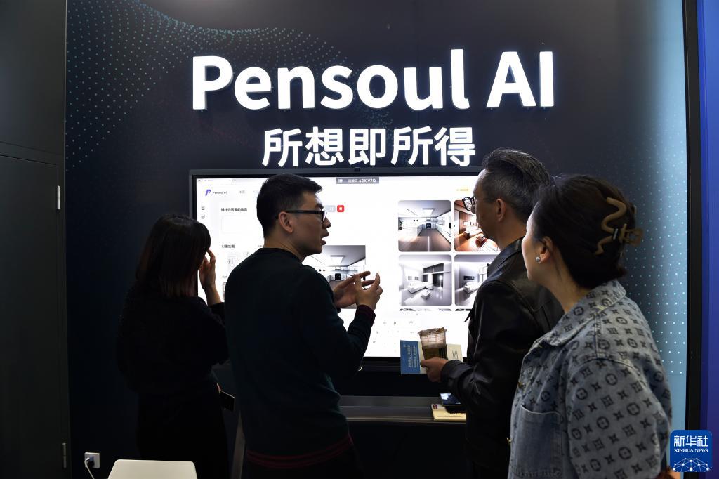 11月24日,在第二屆全球數字貿易博覽會數字技術館,觀眾了解一款AI生成圖像的AIGC智能平臺。