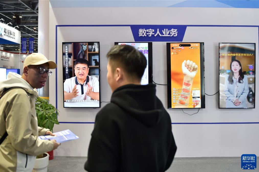 11月24日,在第二屆全球數字貿易博覽會數字技術館,觀眾了解數字人技術在短視頻平臺的應用。