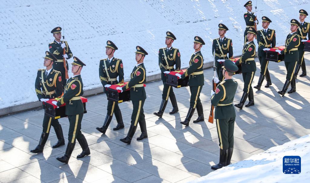 11月24日,禮兵護送志愿軍烈士棺槨入場。