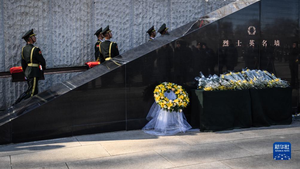 11月24日,禮兵護送志愿軍烈士棺槨進入沈陽抗美援朝烈士陵園安葬地宮。