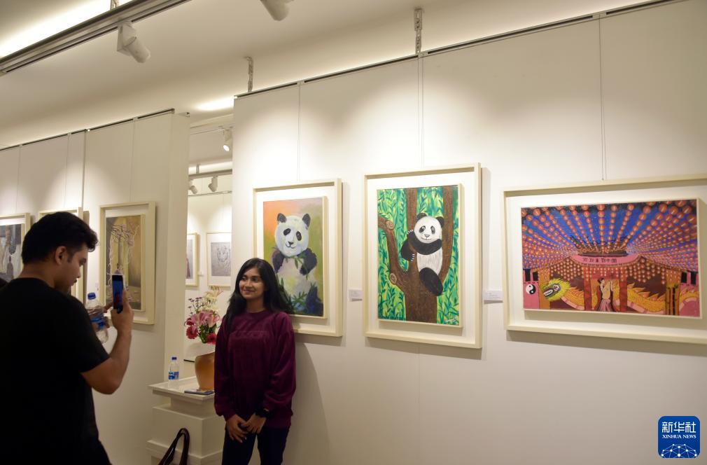 11月22日,在孟加拉國達卡,人們在“國家印象”繪畫展上參觀拍照。