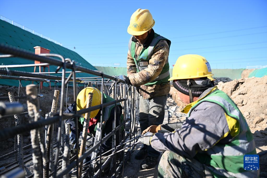 11月24日,中鐵四局工人在雄忻高鐵雄安新區地下段項目建設現場施工。