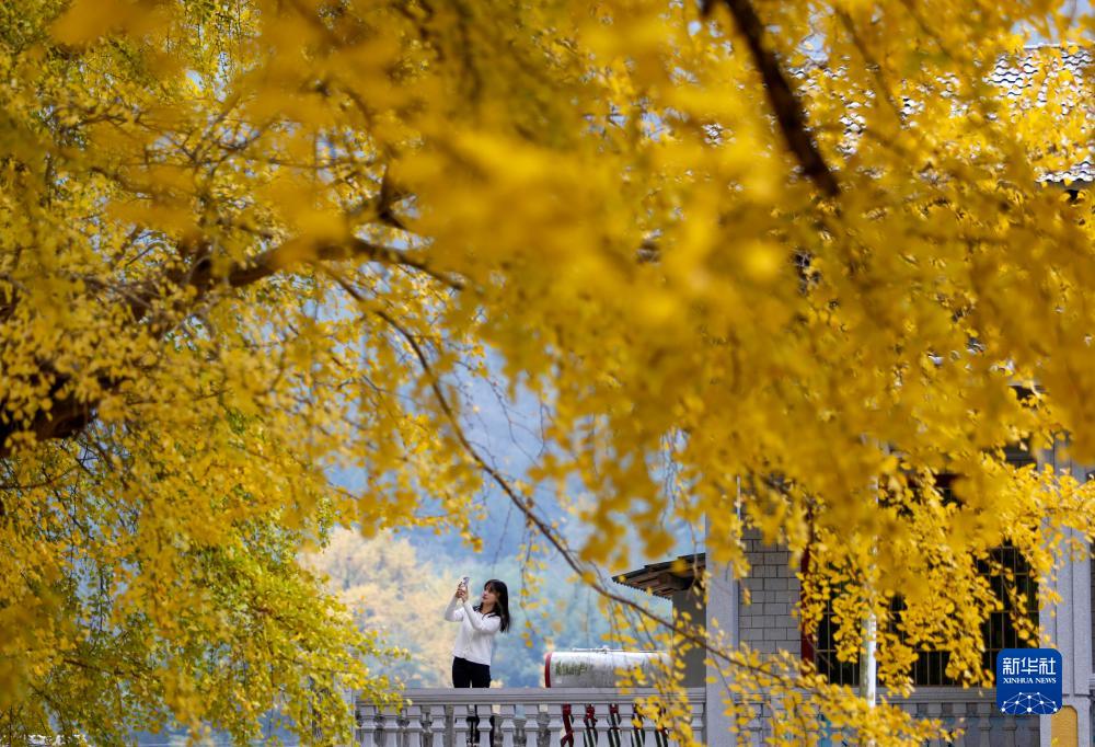 11月24日,游客在貴州省遵義市正安縣謝壩仡佬族苗族鄉上關村拍攝古銀杏樹。