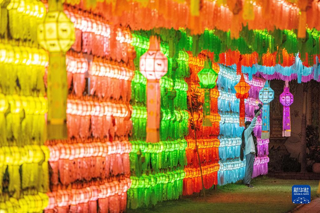 近日,泰國南奔府在哈利奔猜寺舉辦盛大燈會,吸引游人紛紛前來掛燈留影、祈福許愿。