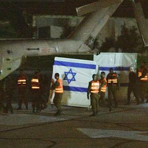 11月24日,搭載獲釋人員的直升機抵達以色列佩塔提克瓦一所醫院。