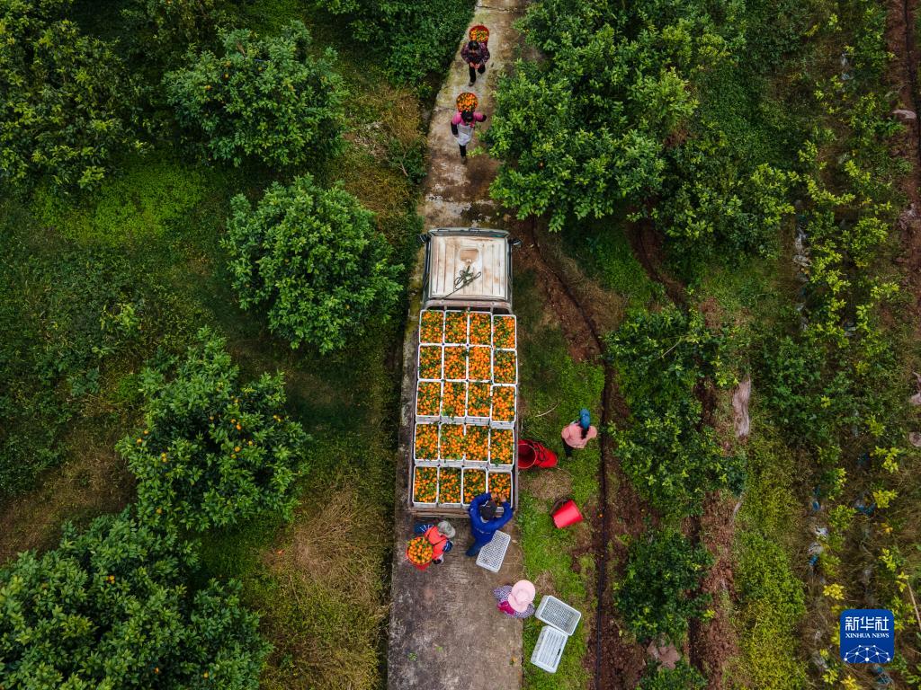 重慶市開州區是柑橘種植大區,以“開縣春橙”為主的柑橘產業已發展成為當地的優勢、特色產業。眼下,柑橘的部分品種豐收上市,田間地頭、工廠車間一派繁忙景象。當地企業將柑橘加工成橙汁、橙酒等產品,供應國內外市場。柑橘產業鏈條不斷延伸,效益得到有效提升。