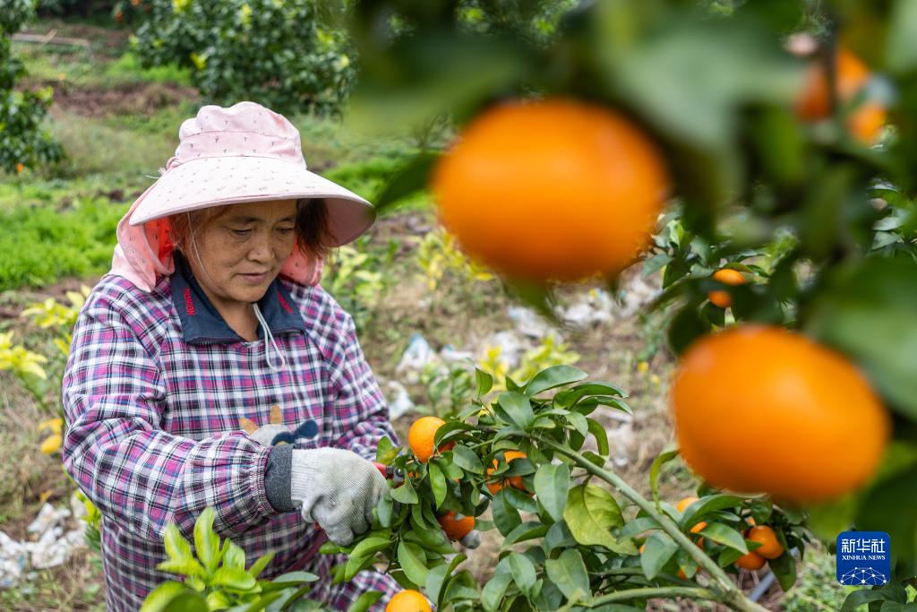 11月24日,在重慶市開州區竹溪鎮大海村的一個柑橘種植基地,村民在采摘砂糖橘。