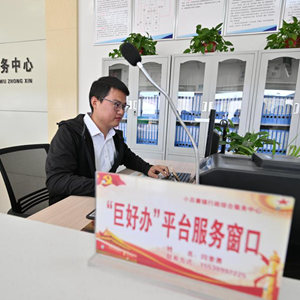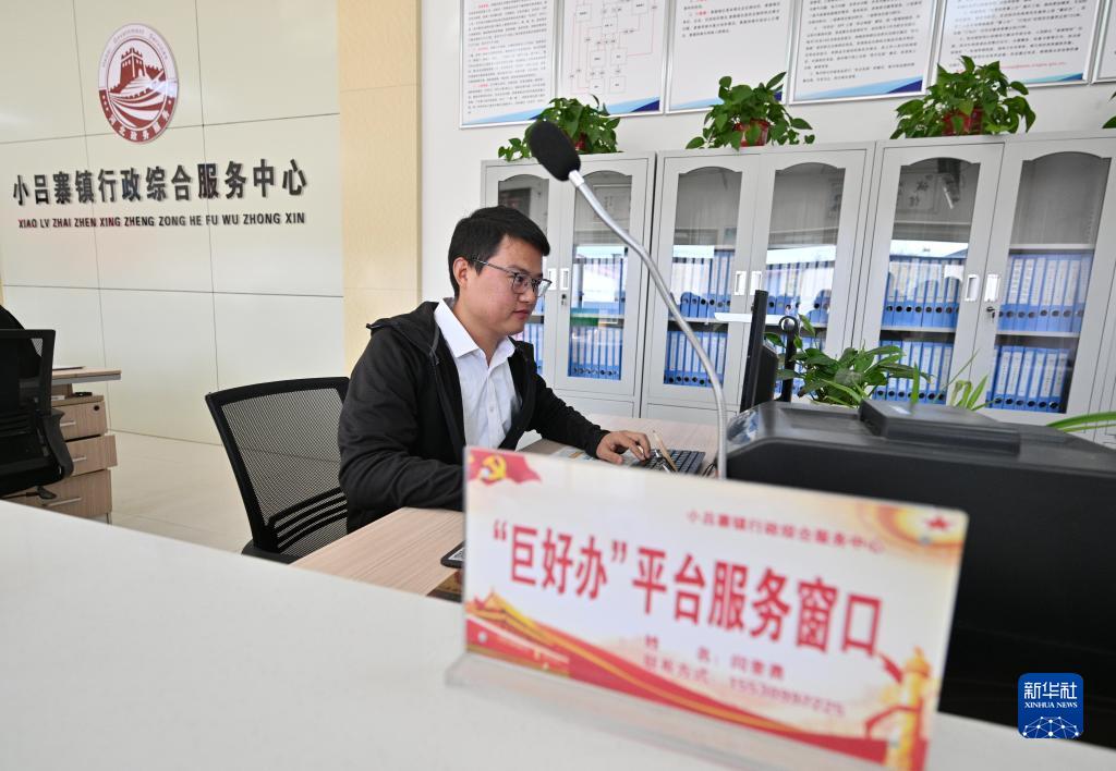 在巨鹿縣小呂寨鎮行政綜合服務中心,工作人員閆奎勇在“巨好辦”平臺服務窗口處理平臺相關事件(11月23日攝)。