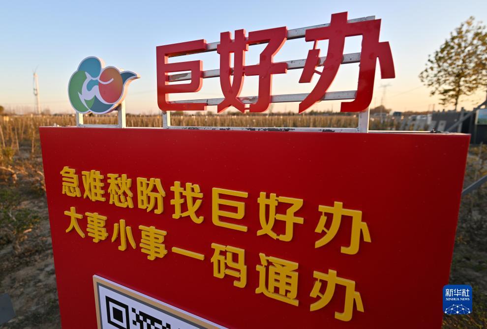 在巨鹿縣堤村鄉前堤村大美桑田金銀花種植基地田間設有一塊“巨好辦”二維碼服務牌,方便群眾直接掃碼辦事(11月23日攝)。當地通過建立金銀花全產業鏈數字平臺,推動鄉村產業數字化,通過產品溯源體系,促進鄉村產品提升質量和標準。
