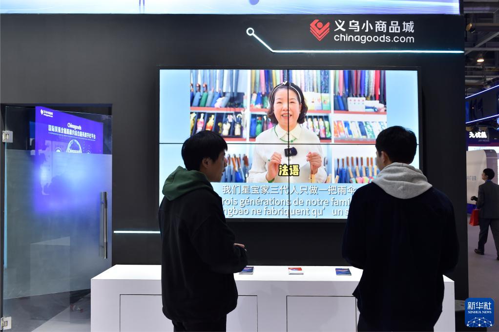 在第二屆全球數字貿易博覽會絲路電商館,觀眾了解AI數字人服務中的轉換視頻語言功能(11月24日攝)。