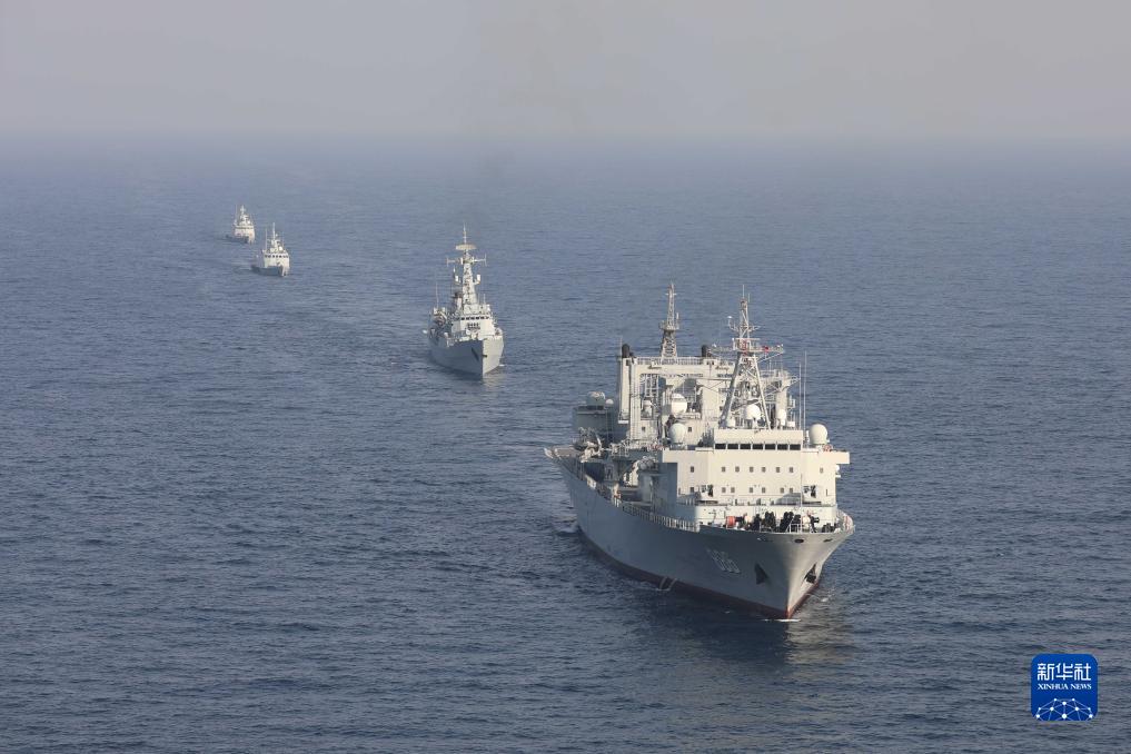 中巴“海洋衛士-3”海上聯合演習在阿拉伯海北部??沼蚺e行,雙方艦艇組織編隊運動(11月14日攝)。