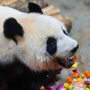 當日,為慶祝大熊貓“貢貢”和“舜舜”來到海南五周年,位于??诘暮D蠠釒б吧鷦又参飯@為這對“熊貓兄弟”準備了玩具和竹筍、水果等美食,同時舉辦多種科普活動和互動游戲,吸引不少游客參加。