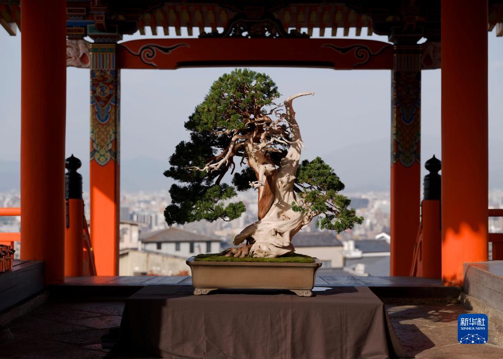為紀念中日和平友好條約締結45周年,中日盆栽水石展24日在京都清水寺開幕。盡顯自然山水之美的盆栽作品與寺廟古建筑融為一體,吸引了大批游客駐足觀賞。