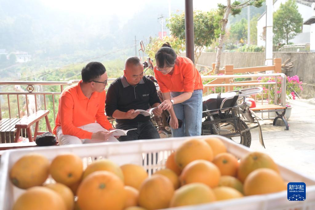 11月24日,在古田縣黃田鎮金翼村,寧德市直機關“四下基層”實踐隊干部陳巧(右)等向村民林芳尤(中)宣傳醫療衛生知識。
