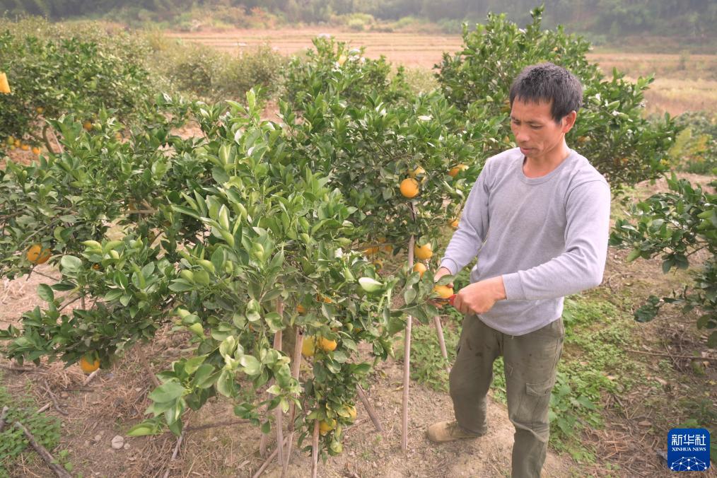 11月24日,古田縣黃田鎮金翼村村民采摘臍橙。