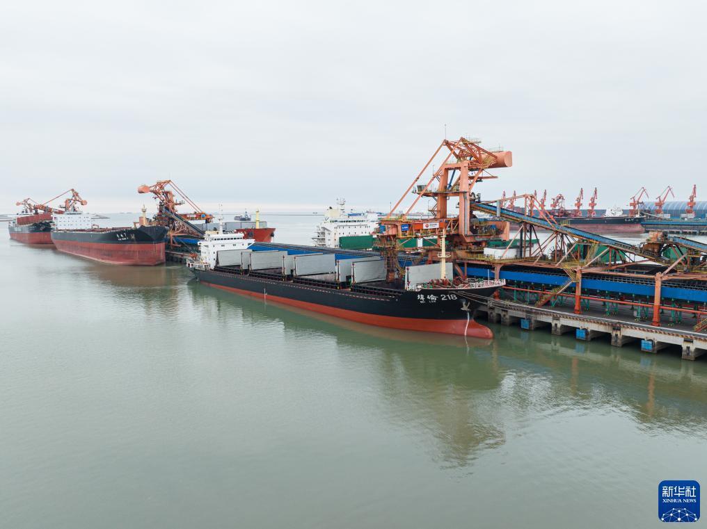 11月25日,船舶在黃驊港裝載電煤(無人機照片)。