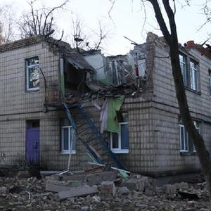 11月25日,在烏克蘭基輔市,一棟建筑屋頂被無人機碎片擊中。