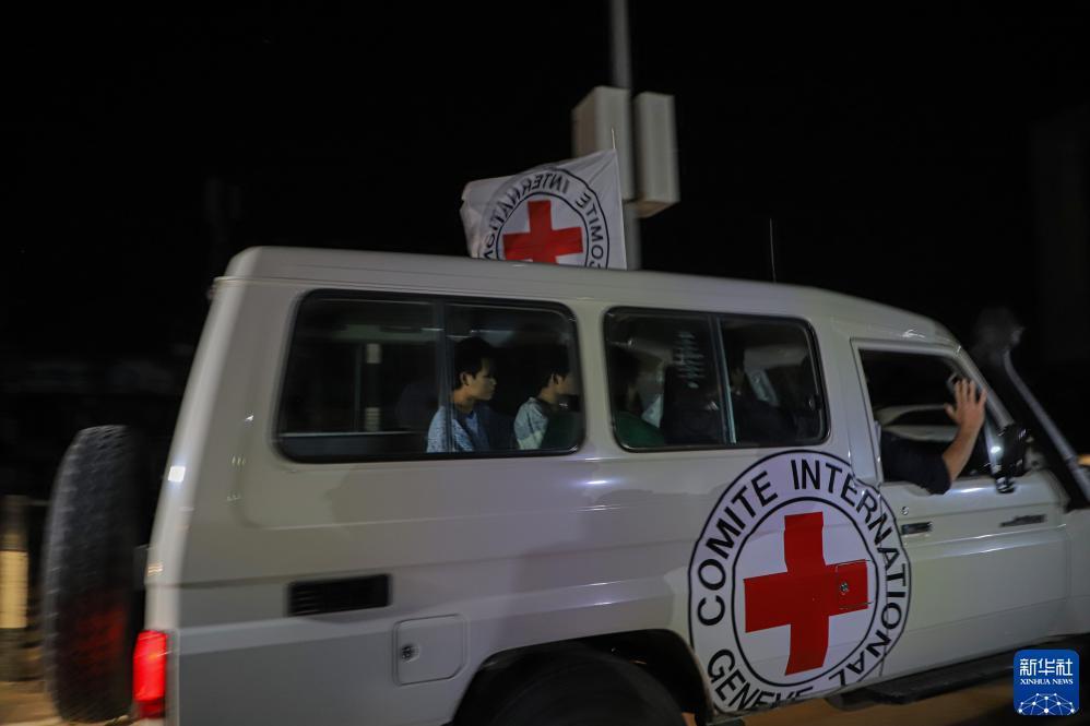11月25日,紅十字國際委員會工作人員將被釋放人員送往加沙地帶南部拉法口岸。