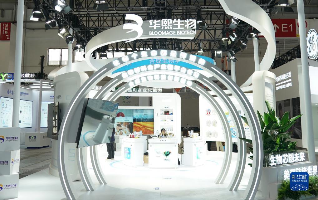 11月26日在中國國際供應鏈促進博覽會健康生活鏈展區拍攝的華熙生物展位。