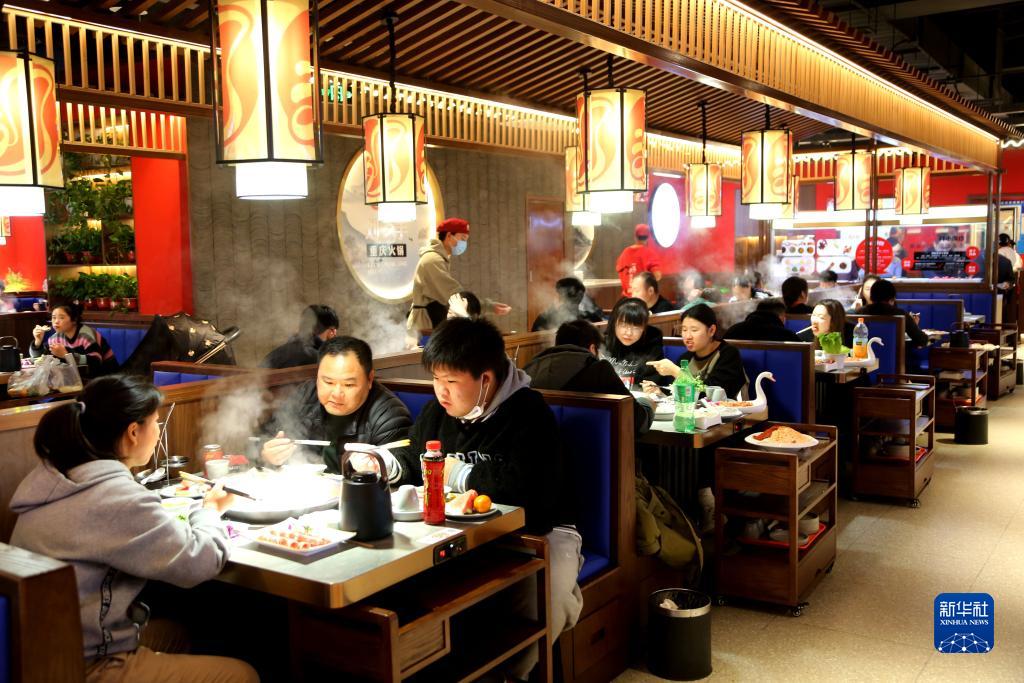 11月26日,市民在在江蘇省連云港市連云區一家火鍋店用餐。
