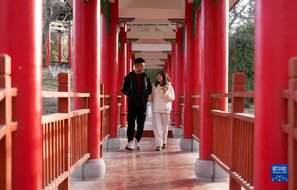 初冬時節,寧夏銀川不少市民選擇來到公園樂享周末時光。