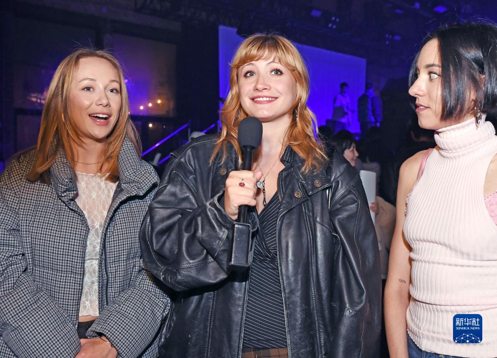 11月25日,在美國紐約,觀眾西爾薇·施泰格(中)接受采訪。她告訴記者,五條人是她見過最好的樂隊之一,她首次觀看就非常喜歡他們的表演。