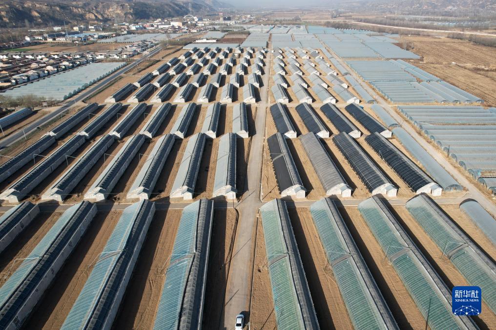 這是11月26日在涇川縣拍攝的涇汭河川區萬畝設施蔬菜產業園王村核心區(無人機照片)。