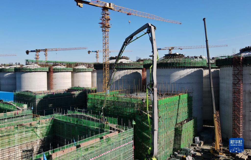 11月26日在河北省唐山市豐潤區拍攝的糧食安全應急儲備及食品深加工全鏈化綜合生產基地項目建設工地(無人機照片)。