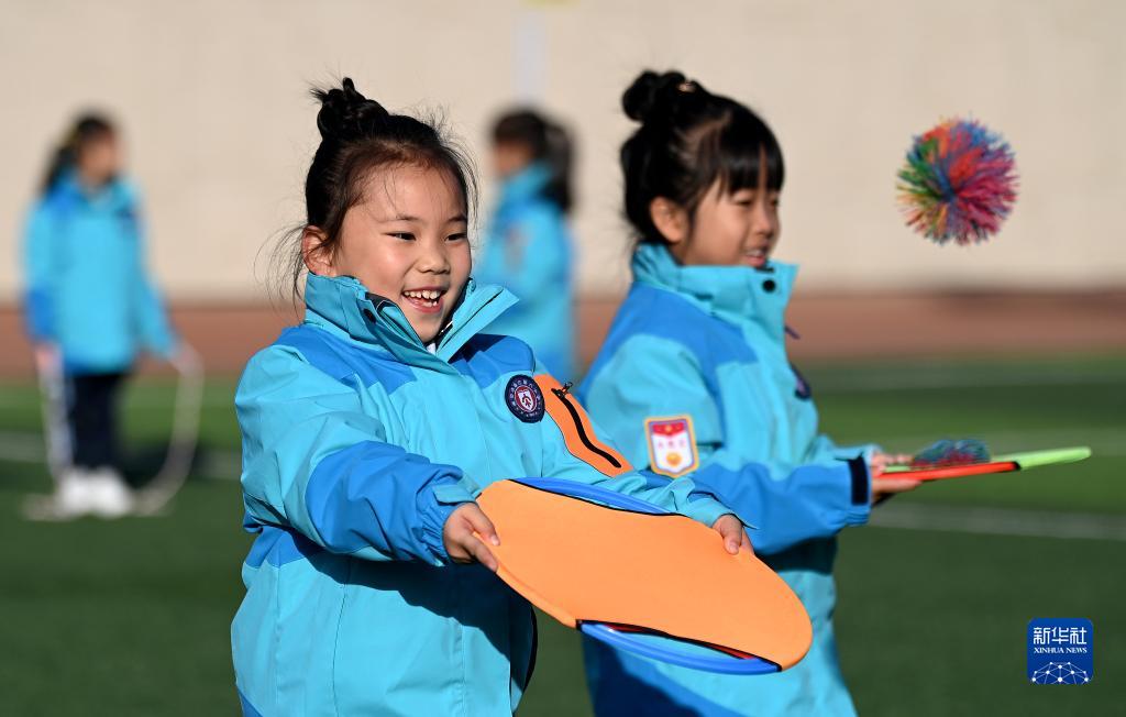 11月27日,西安市曲江第六小學學生在進行課間活動。
