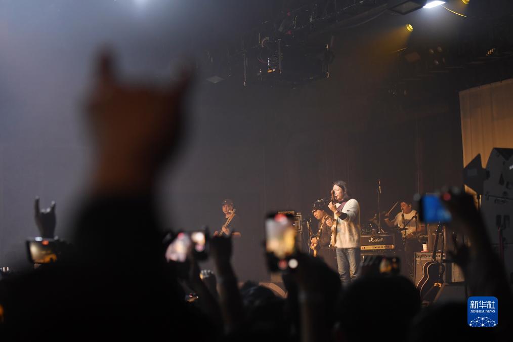 11月26日晚,在美國紐約舉行的“有朋自東方來”音樂節上,人們觀看萬能青年旅店樂隊演出。