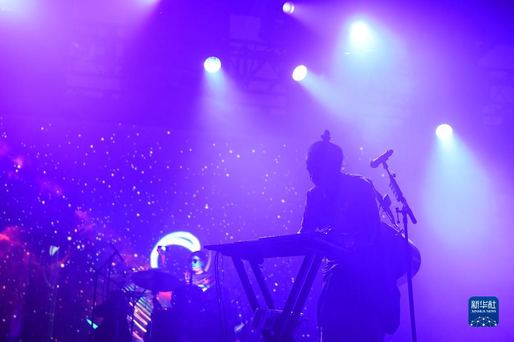 11月26日晚,痛仰樂隊在美國紐約舉行的“有朋自東方來”音樂節上表演。