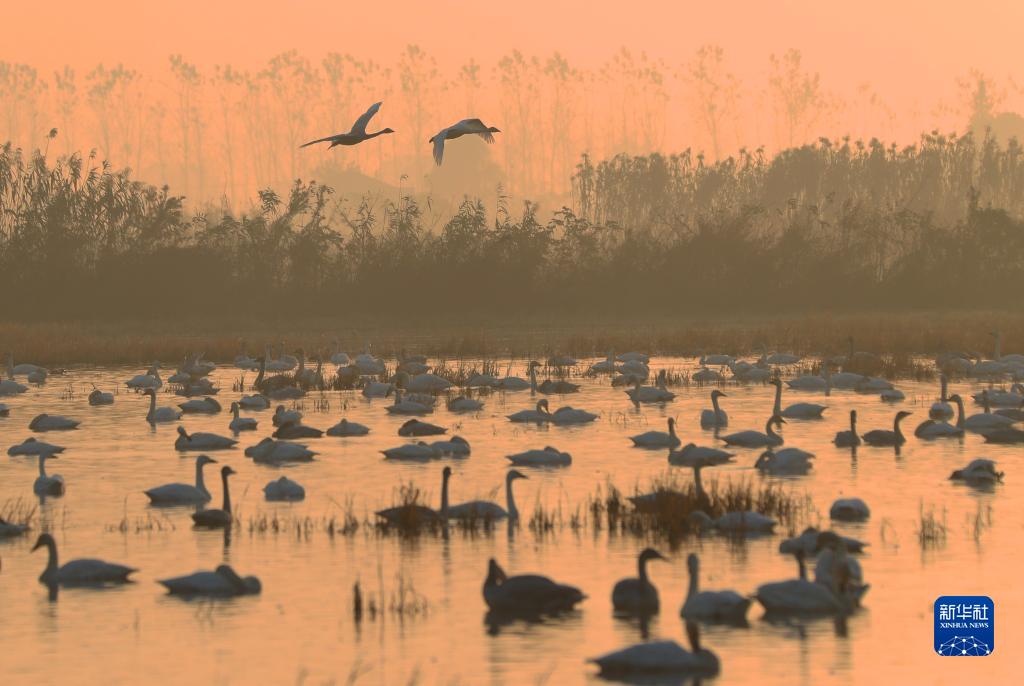 初冬時節,數千只小天鵝陸續飛抵位于湖南省岳陽市的屈原管理區東古湖濕地越冬。近年來,屈原管理區先后實施退耕還林、退耕還濕、渠系疏浚、自然修復等工程,多措并舉開展被損小微濕地修復,吸引越來越多的候鳥來此越冬棲息。