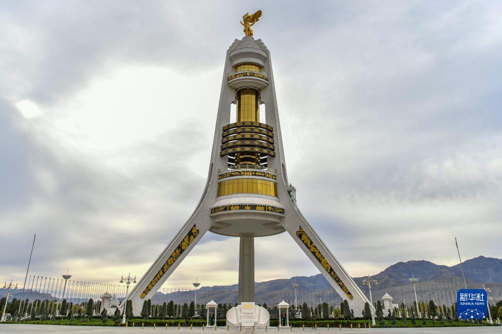 這是11月26日在土庫曼斯坦首都阿什哈巴德拍攝的中立柱。