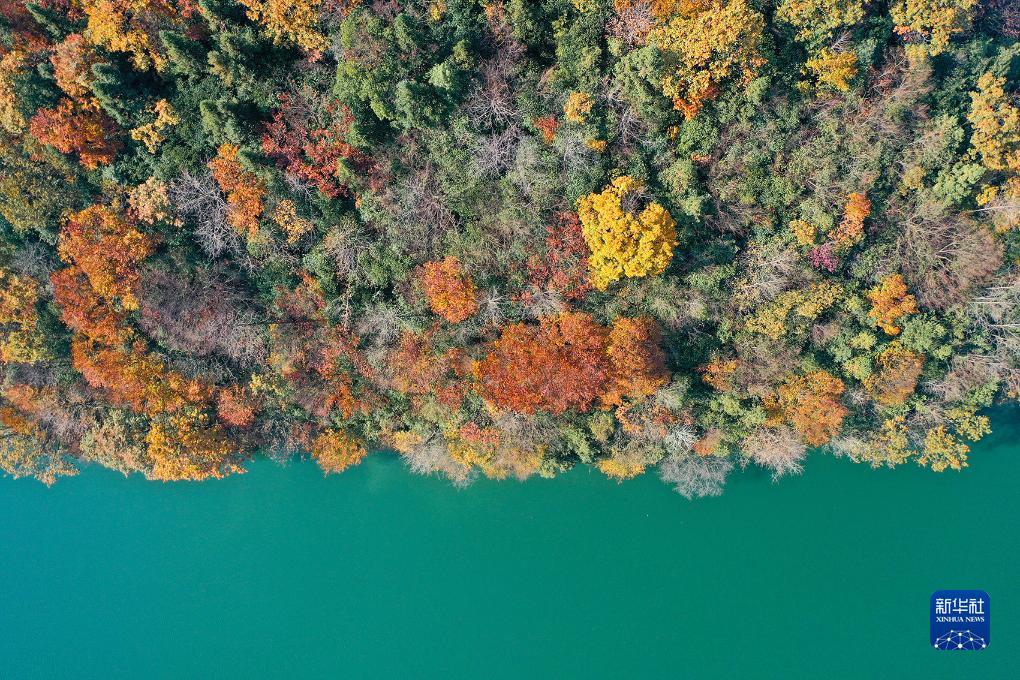 11月27日,在貴州省畢節市百里杜鵑管理區鵬程街道移山湖拍攝的景色(無人機照片)。